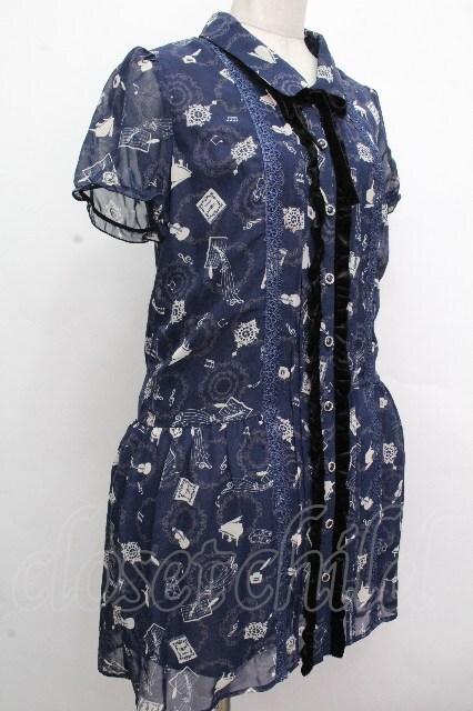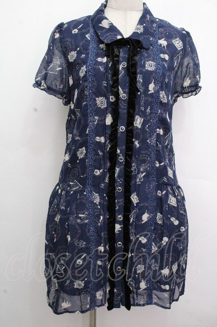 axes femme / メロディーメルヘンチュニック 紺 S-26-04-26-044-AX-OP-HR-ZS