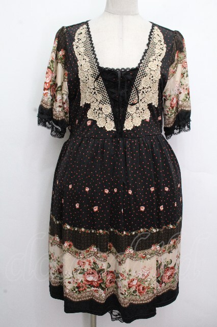 axes femme / 花xドットチュニック 黒 S-26-04-26-045-AX-TS-HR-ZS