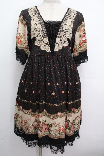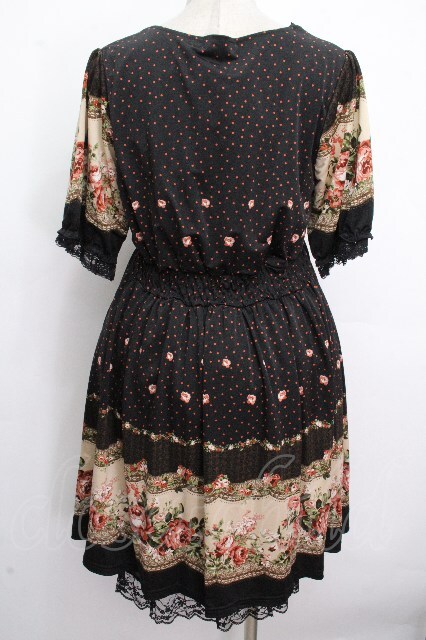 axes femme / 花xドットチュニック 黒 S-26-04-26-046-AX-TS-HR-ZS
