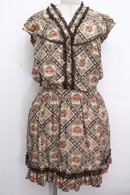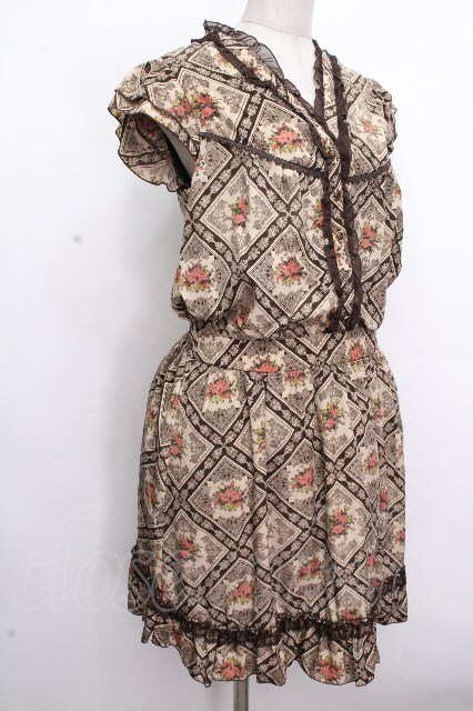 axes femme / プリント総柄ワンピース ブラウン S-26-04-26-048-AX-BL-HR-ZS