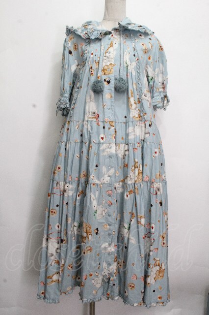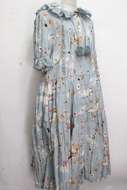 PINK HOUSE / クッキーラビッツプリントフード付きミディワンピース サックス S-26-04-26-052-LO-OP-AS-ZS