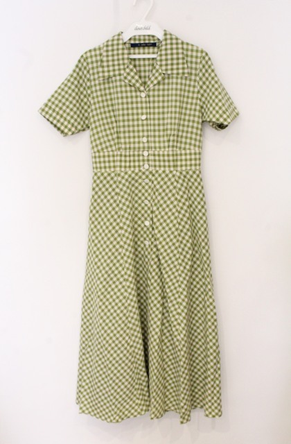 an another angelus / レトロギンガム開衿ワンピース グリーン O-26-04-25-1028-CA-OP-IG-OS