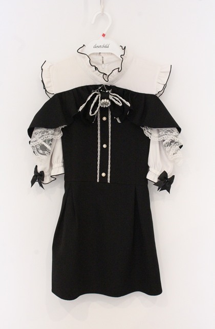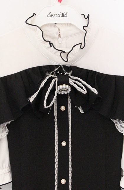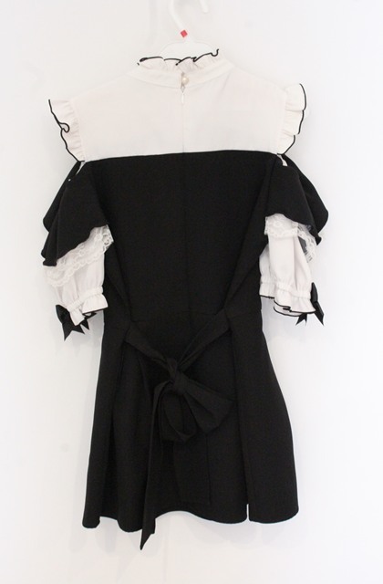 MA*RS / もえにゃコラボ 半袖肩開きビジューリボンフリルセットアップ 【欠品あり】 クロ×シロ O-26-04-25-1069-EL-OP-IG-OS