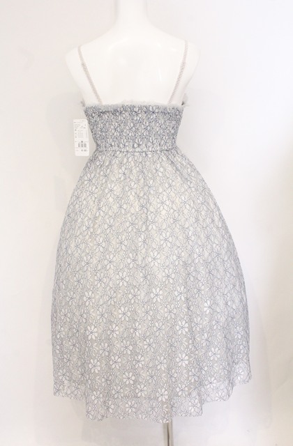 axes femme / 配色レースマキシワンピース M サックス O-26-04-25-1044-AX-OP-OW-OS