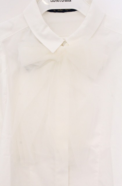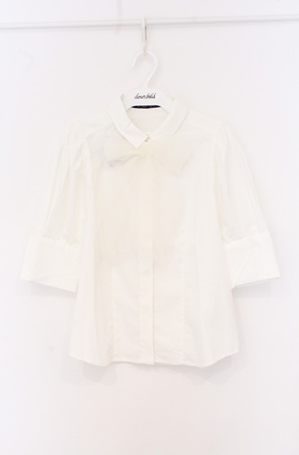 an another angelus / チュールリボンタイ5分袖シャツ【洗える】 オフシロ O-26-04-25-1026-CA-BL-IG-OS