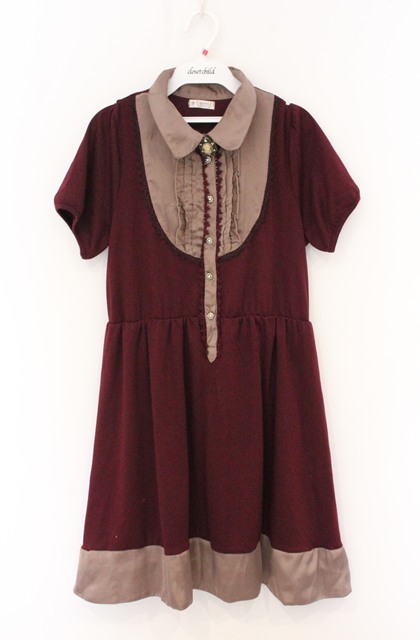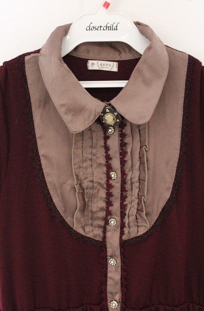 axes femme / ブローチ付きブラウス風ワンピース M ワイン O-26-04-25-1052-AX-OP-OW-OS