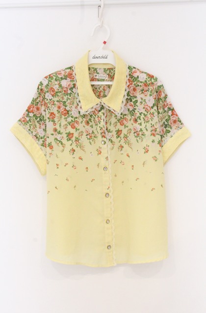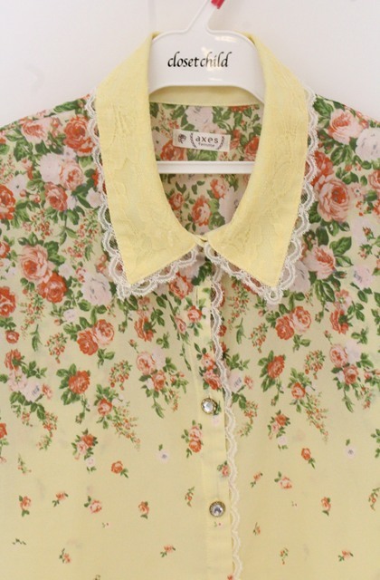 axes femme / レース切り替えローズシャツ M イエロー O-26-04-25-1071-AX-BL-IG-OS