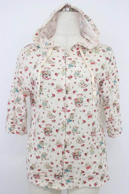 Candy Stripper / レトロネコ柄ZIPパーカー ピンク T-26-04-28-004-PU-TO-OW-ZT