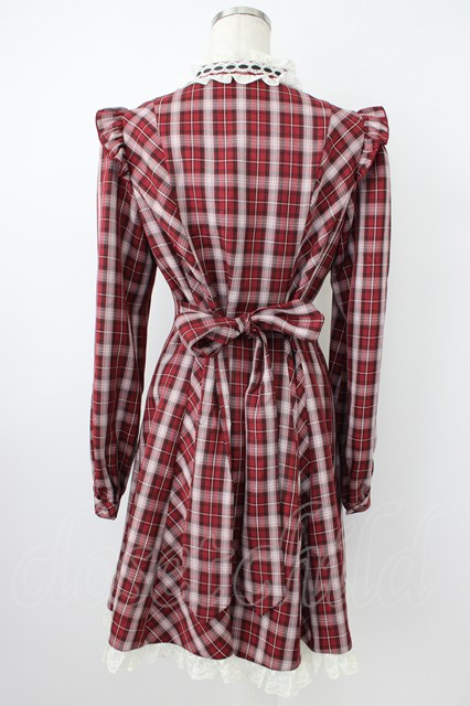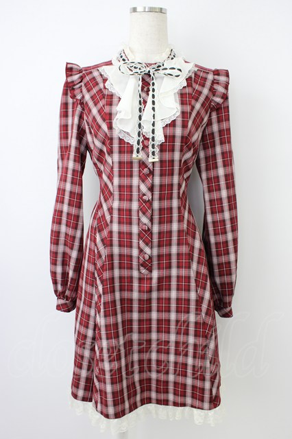 Secret Honey / チェック柄レースリボンワッフルワンピース アカ T-26-04-28-019-CA-OP-OW-ZT