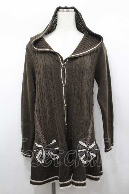 axes femme / フード付きライン入りリボンカーディガン ブラウン I-26-04-26-015-AX-TO-SA-ZI
