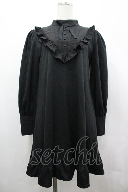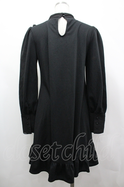 Jamieエーエヌケー / ハイネックフリル長袖ワンピース 黒 I-26-04-26-050-0-OP-SA-ZI