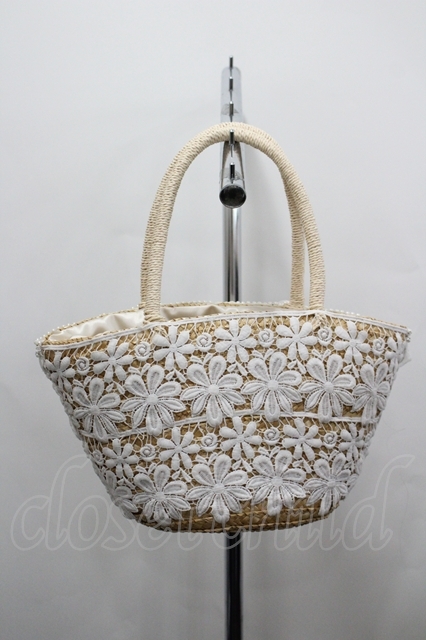 axes femme / フラワーレースストローバッグ アイボリーX白 I-26-04-26-110-AX-BG-SA-ZI
