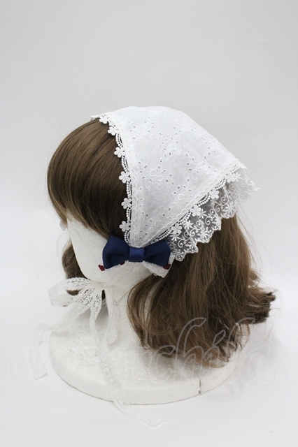 Amavel / Dreaming Kitten Picnicレースバブーシュカ 白Xネイビー I-26-04-26-115-CA-AC-SA-ZI