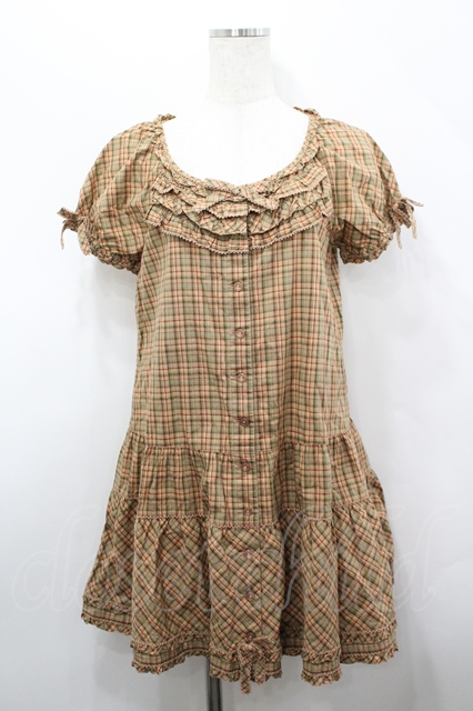 PINK HOUSE / チェック半袖チュニックブラウス ブラウンXチェック I-26-04-26-027-LO-BL-SA-ZI