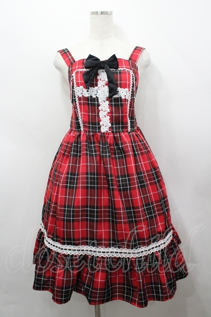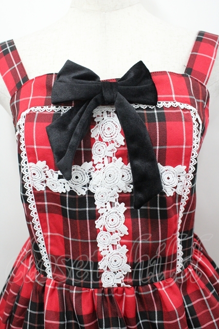 Eri Aino's collaboration / TTAINリボンレースジャンパースカート M 赤チェック I-26-04-26-053-PU-OP-SA-ZI