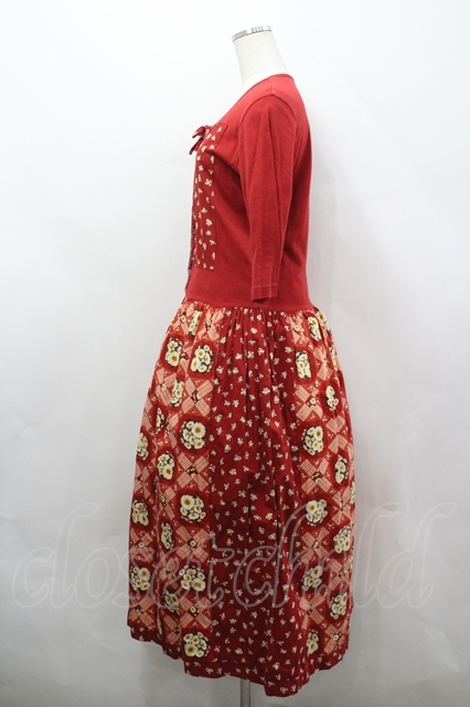 PINK HOUSE / カットソー切替ワンピース 赤 I-26-04-26-073-LO-OP-TE-ZI