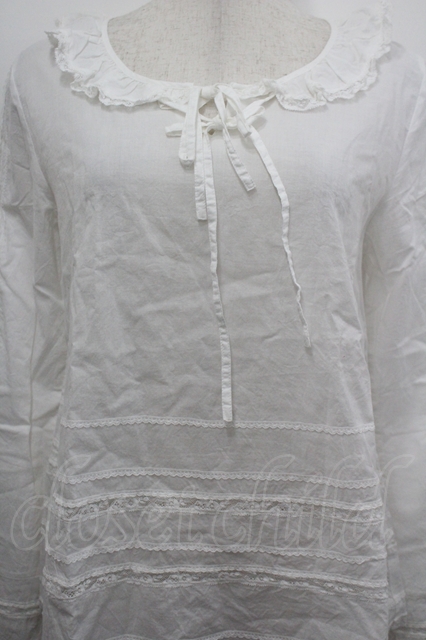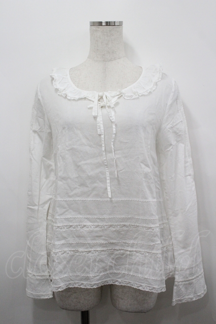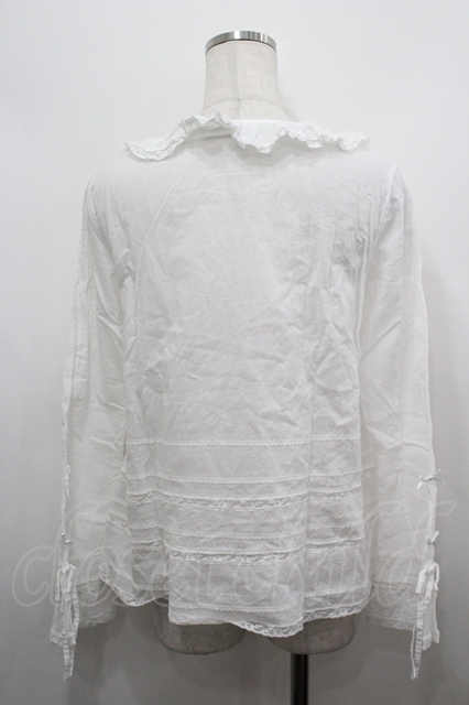 PINK HOUSE / レースストライプ長袖ブラウス 白 I-26-04-26-022-LO-BL-TE-ZI