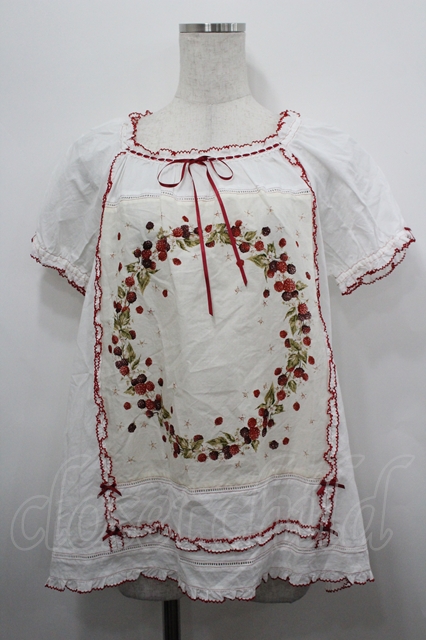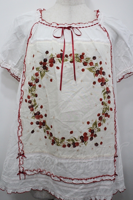 PINK HOUSE / ベリーリースプリントチュニックブラウス 白 I-26-04-26-023-LO-BL-TE-ZI