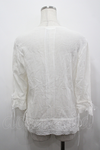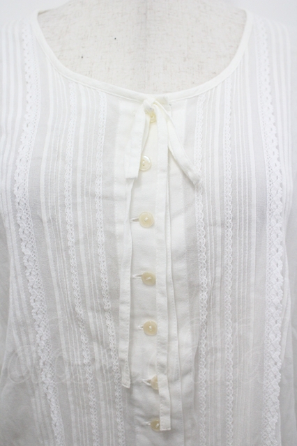 PINK HOUSE / サイド編み上げピンタックブラウス 白 I-26-04-26-021-LO-BL-TE-ZI