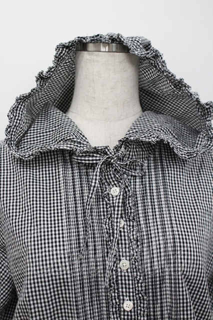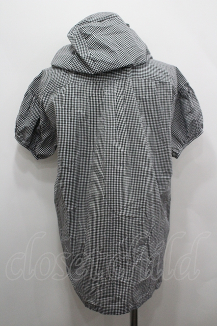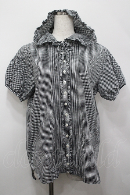PINK HOUSE / フロントピンタックリボンフード半袖ブラウス 黒ギンガム I-26-04-26-024-LO-BL-SA-ZI