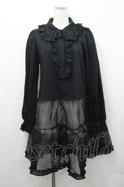 Candy Stripper / LACE COLLAR POLO ONE-PIECE 黒 I-26-04-26-056-PU-OP-SA-ZI
