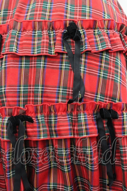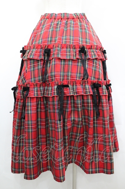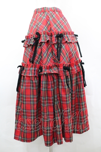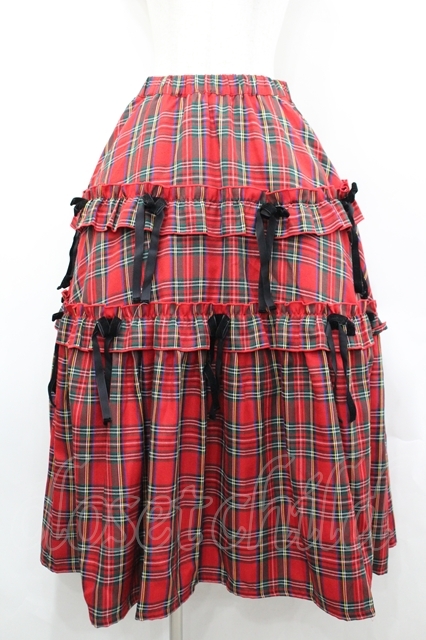 Candy Stripper / チェックリボンスカート 赤チェックX黒 I-26-04-26-093-PU-SK-SA-ZI
