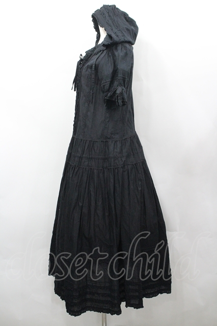 PINK HOUSE / フード付ティアードワンピース 黒 I-26-04-26-071-LO-OP-TE-ZI