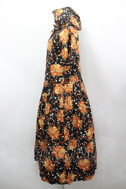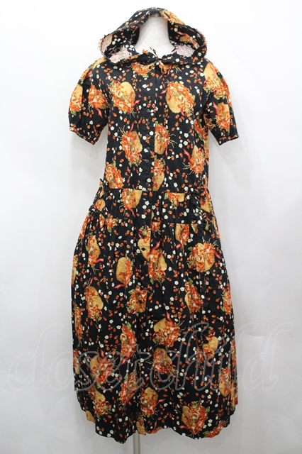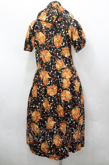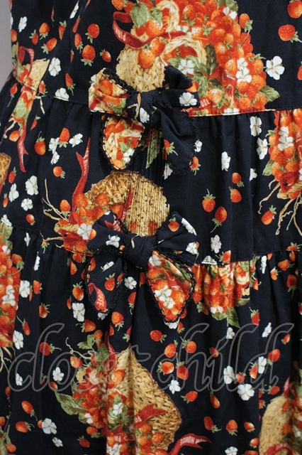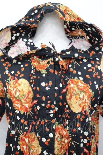 PINK HOUSE / いちごバスケット柄たくし上げフード半袖ワンピース 黒 I-26-04-26-067-LO-OP-TE-ZI