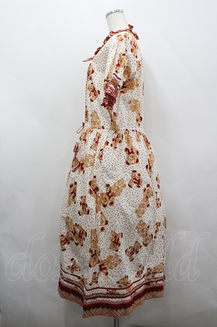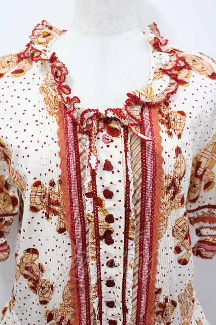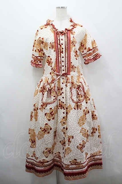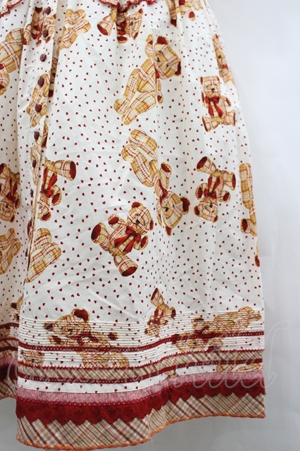 PINK HOUSE / チェックくまさんハート半袖ワンピース アイボリー×赤 I-26-04-26-079-LO-OP-TE-ZI