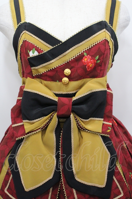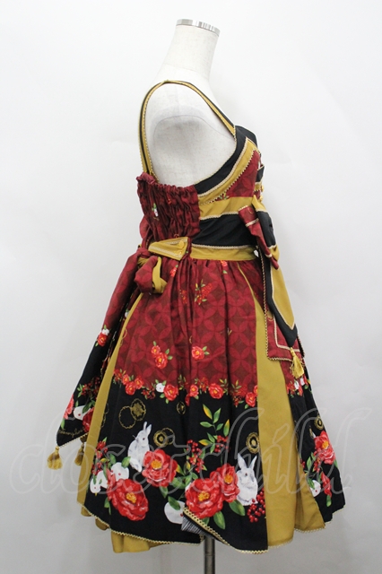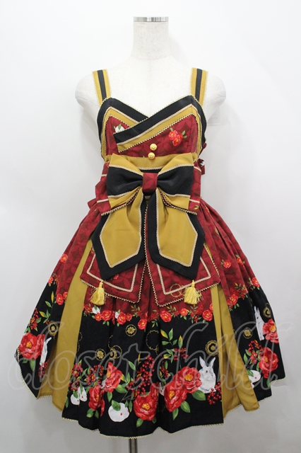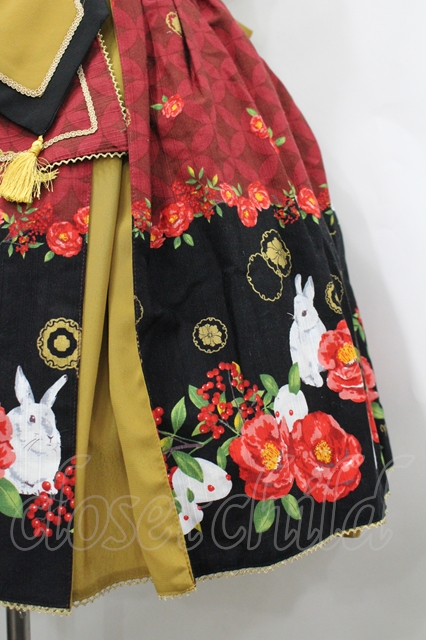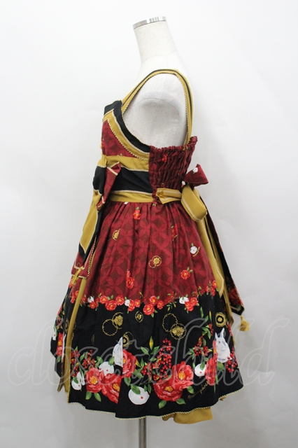 metamorphose / 風花のゆきうさぎタックジャンパースカート 赤 I-26-04-26-040-ME-OP-SA-ZI