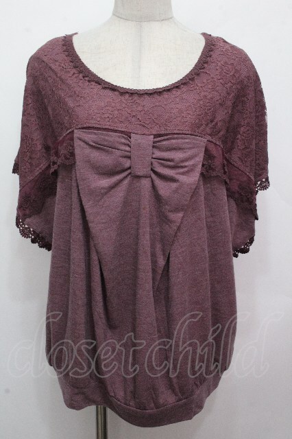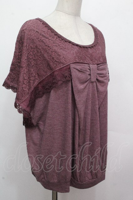 axes femme / リボンドルマントップス パープル S-26-04-27-025-AX-TO-HR-ZS