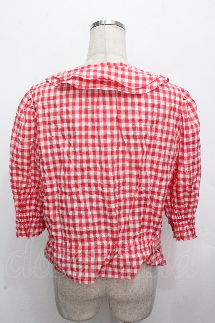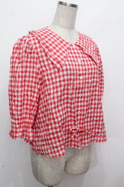 Jane Marple / シャーリングギンガムピューリタンカラーブラウス 赤x白 S-26-04-27-026-JM-TO-HR-ZS