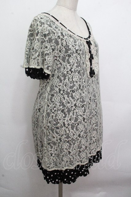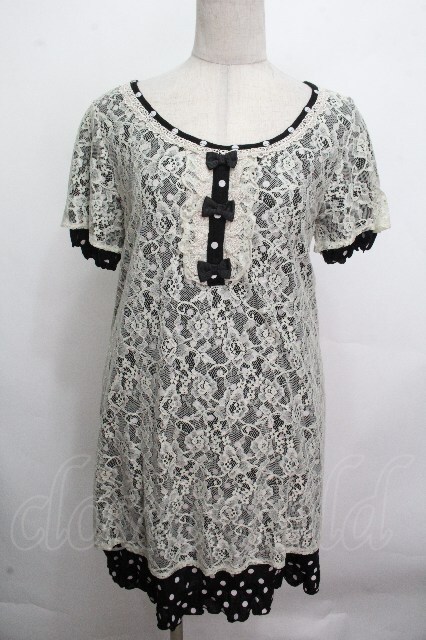 axes femme / ドットxレースワンピース 黒 S-26-04-27-032-AX-TO-HR-ZS