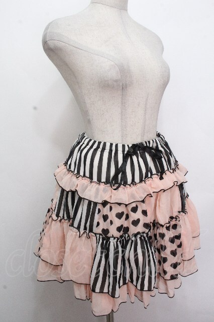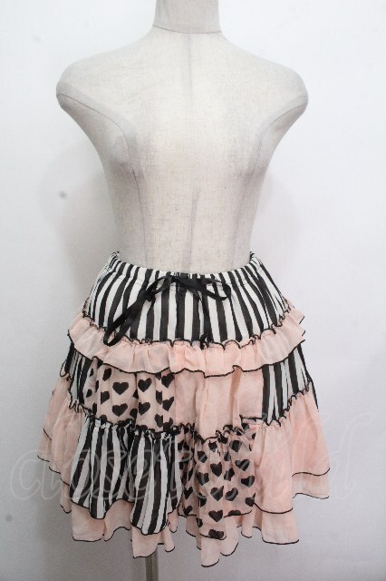 ALGONQUINS / ストライプxハートシフォンスカート S-26-04-27-038-AL-SK-HR-ZS
