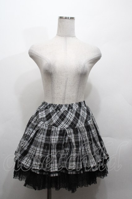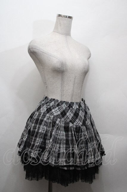 PUTUMAYO / チェック裾チュールスカート グレー S-26-04-27-041-PT-PA-HR-ZS