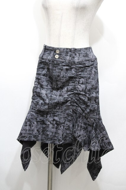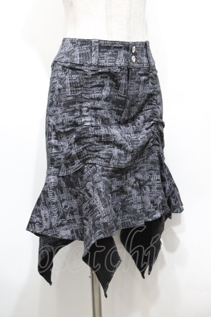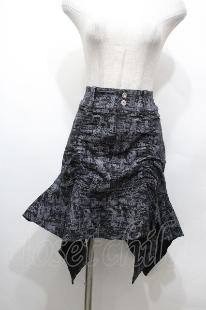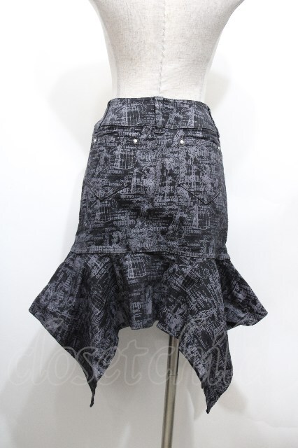 ALGONQUINS / プリントイレヘムデニムスカート 黒 S-26-04-27-044-AL-SK-HR-ZS