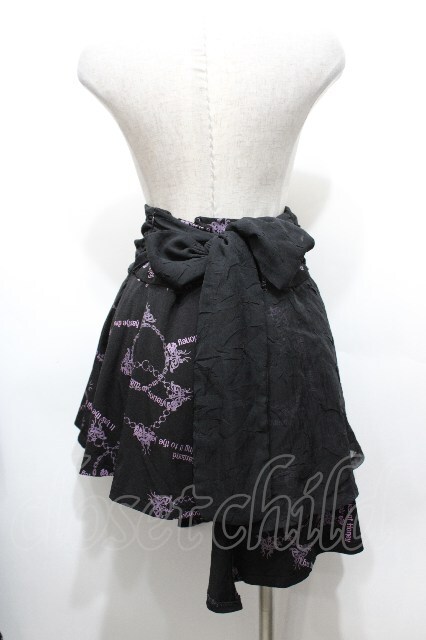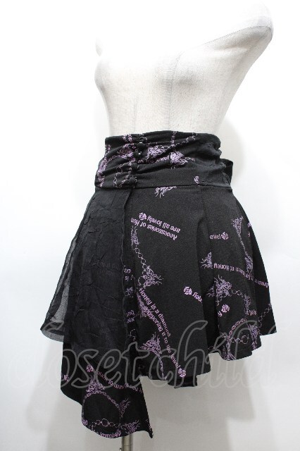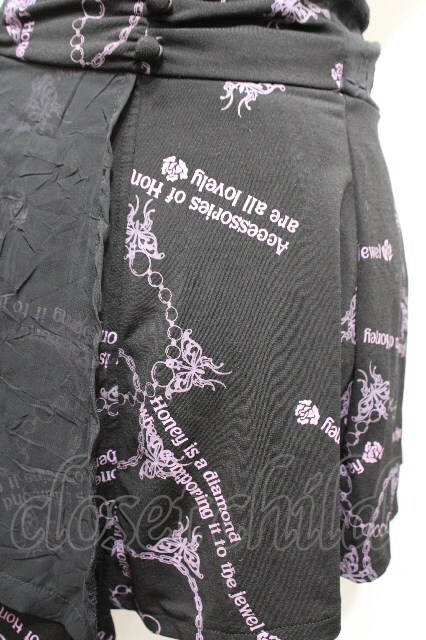 h.Jelly HONEY / プリントイレヘムスカート 黒x紫 S-26-04-27-045-HN-SK-HR-ZS