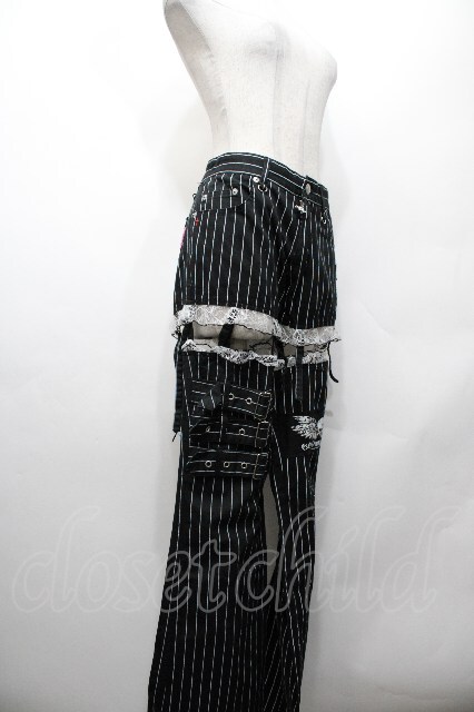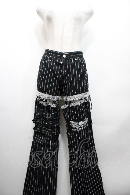MAD / レッグカバー付きストライプパンツ 黒x白 S-26-04-27-058-PU-PA-HR-ZS