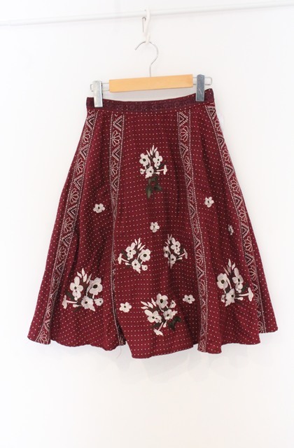 axes femme / ドット柄×お花刺繍入りスカート M ワイン O-26-04-27-029-AX-SK-OW-OS