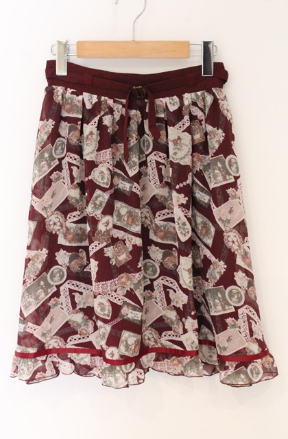 axes femme / レースコラージュ柄スカート M ワイン O-26-04-27-036-AX-SK-OW-OS