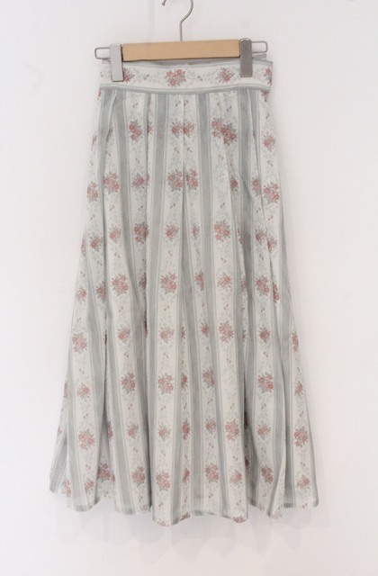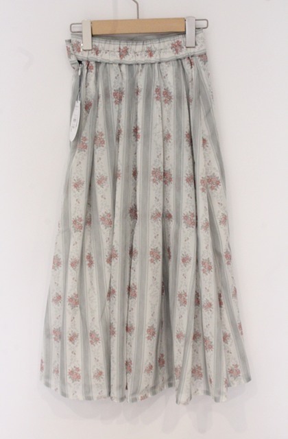 an another angelus / シアーストライプ花柄タックスカート ミント O-26-04-27-017-CA-SK-IG-OS