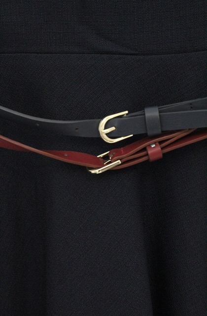 an another angelus / ダブルカラーベルトフレアースカート ネイビー O-26-04-27-016-CA-SK-IG-OS