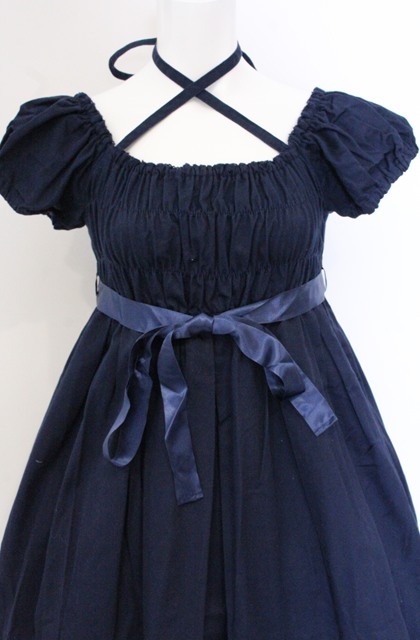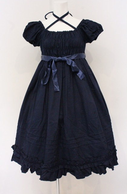 CHOCOCHIP COOKIE / 共布フリルシャーリングワンピース ネイビー O-26-04-27-074-LO-OP-OW-OS