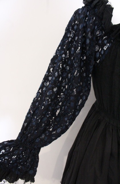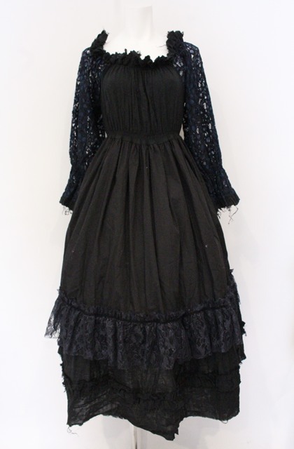 Dangerous nude / レーススリーブガーゼワンピース F ブラック×ブルー O-26-04-27-069-PU-OP-OW-OS