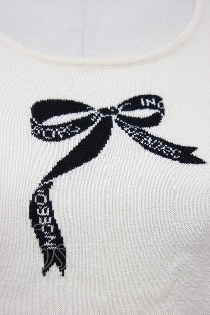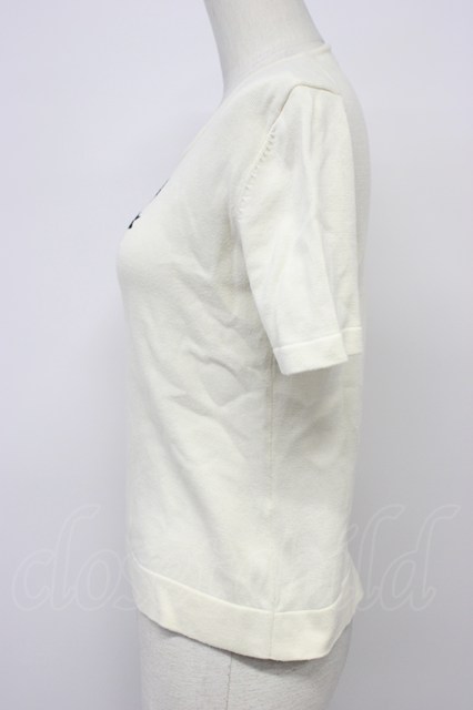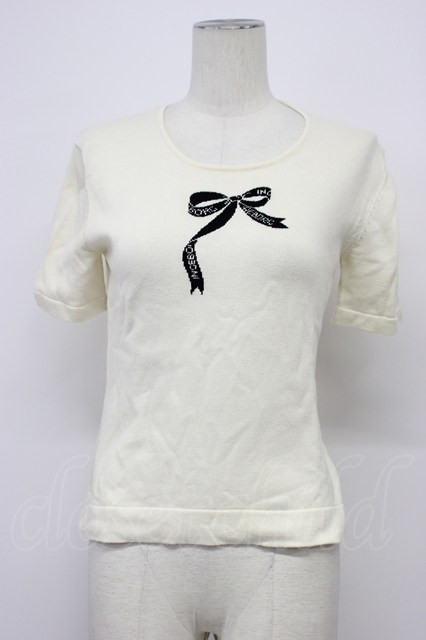 INGEBORG / ロゴリボン半袖ニット M アイボリー T-26-04-29-007-LO-TO-OW-ZT