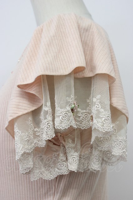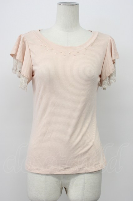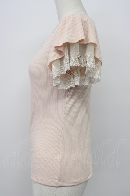 axes femme / 袖プチバラ使いトップス M ピンク T-26-04-29-017-AX-TO-OW-ZT