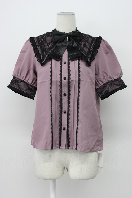 DearMyLove / 十字架リボンセーラーレース襟ブラウス M パープル×クロ T-26-04-29-022-EL-TO-OW-ZT