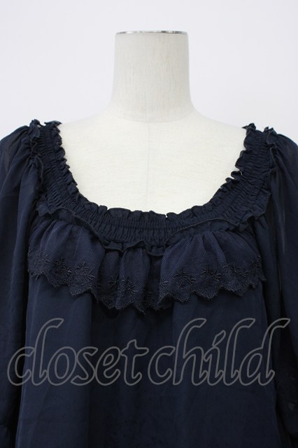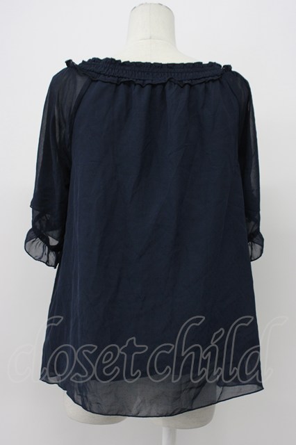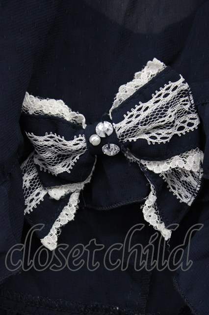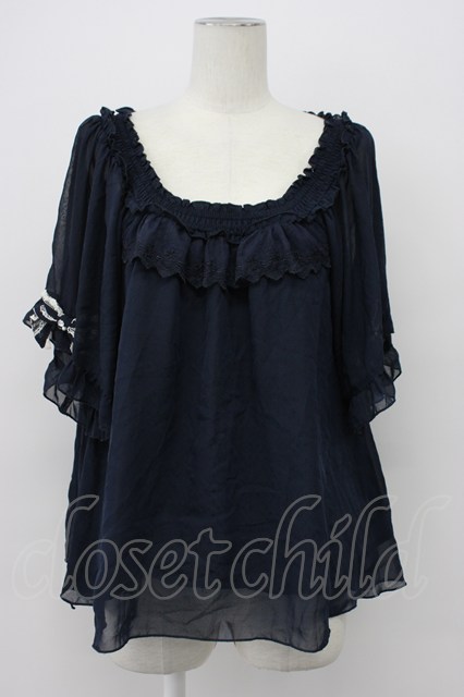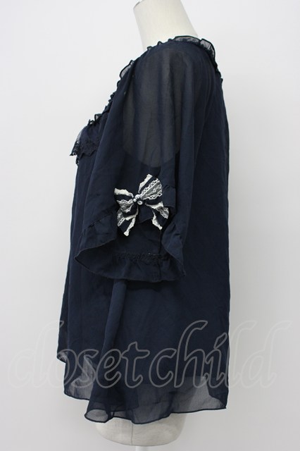 axes femme / リボン袖Aラインブラウス ネイビー T-26-04-29-032-AX-BL-IG-ZT
