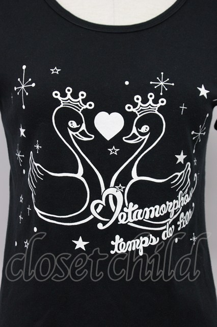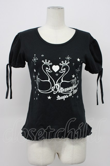 metamorphose / スワンプリントフリルカットソー クロ T-26-04-29-037-ME-TO-OW-ZT