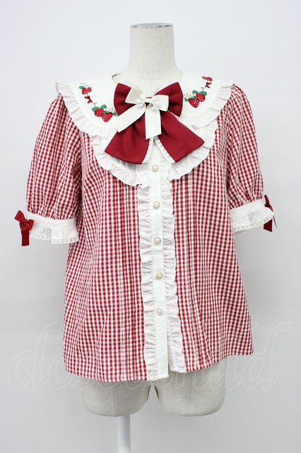 Amavel / Strawberry Farmフリルブラウス F アカ T-26-04-29-038-CA-BL-OW-ZT